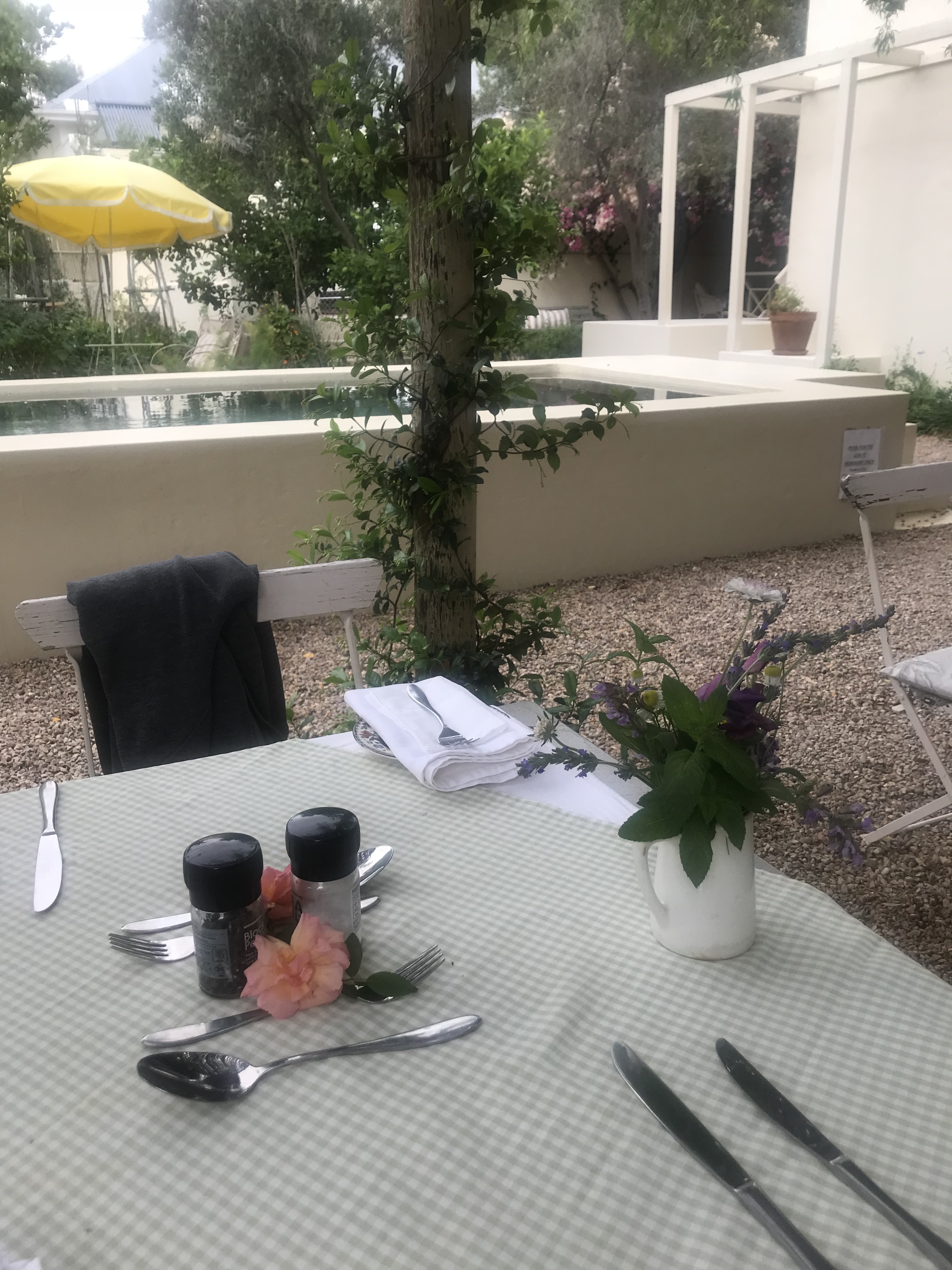 After a lovely breakfast in the warm spring sun, we took off for the next town through the Karoo – and yes, it really does feel like miles and miles of nothing. The landscape is very dry and you see empty dams and the odd sheep here and there. I think this arid landscape is why I have never been drawn on a trip to these parts. I battled to get any cell reception, and our music playlist was exhausted within two hours. I found myself in this time though, just sitting back and relaxing, and cleared my head of any expectation going forward. I wanted to enjoy this alone time with my man and be grateful for our many wonderful years we’ve been together.